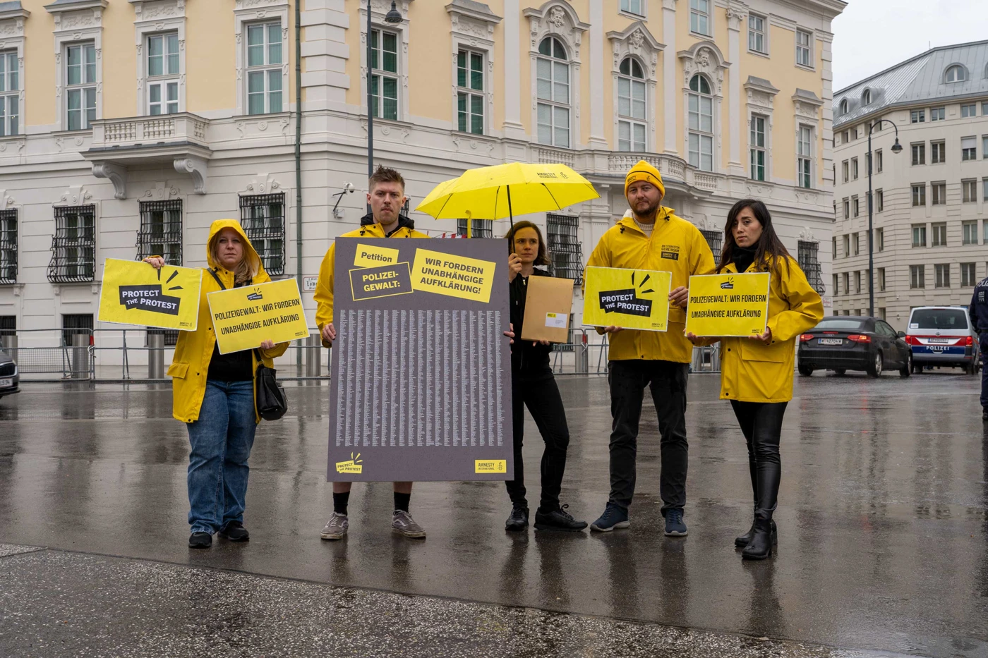 Am 24. April 2023 haben wir die rund 10.000 Petitionsunterschriften an das Bundeskanzleramt übergeben. Gemeinsam fordern wir eine unabhängige Ermittlungsstelle, die Polizeigewalt wirksam untersucht.